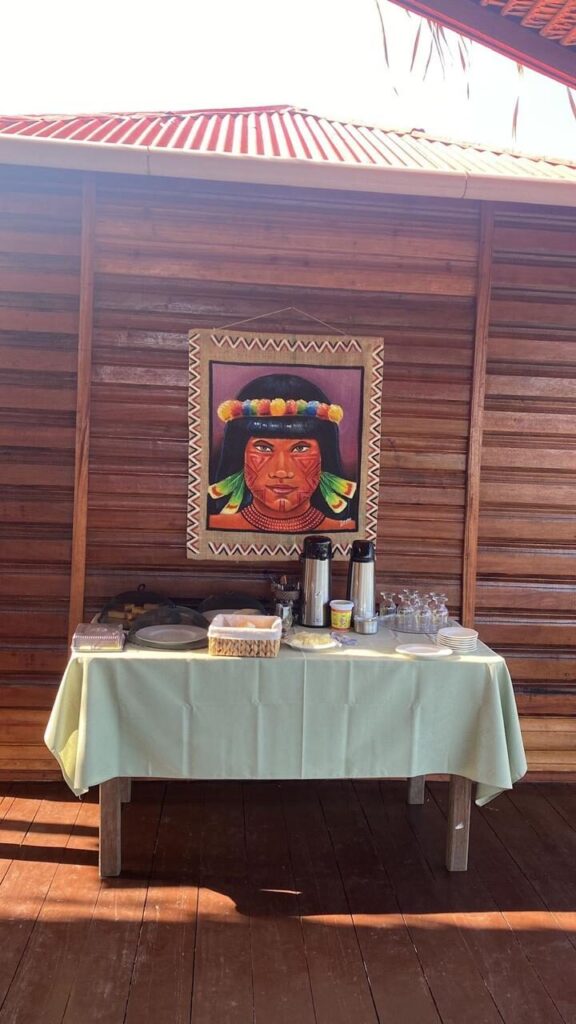 As imagens da estrutura revelam um espaço cuidadosamente planejado, com acomodações em madeira nativa, decoração inspirada na cultura amazônica indígena e ambientes amplos e arejados, voltados para o rio e a floresta. As áreas comuns, como o salão de refeições e o deck panorâmico, oferecem vista privilegiada da paisagem, permitindo ao visitante relaxar em um cenário de tranquilidade e beleza natural.